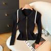 Black Knitted Cardigan for Women In Autumn and Winter New Korean Style Design Double Zipper Head Lapel Top