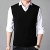 Pulover tricotat din lână cu decolteu în V pentru bărbați - Pulover de afaceri fără mâneci pentru domni