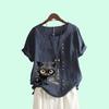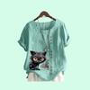 Modă Femei Top Mânecă Scurtă Gât Rotund Vară Larg Tricou In Laides Casua Bluză cu Imprimeu Pisică