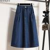MODIQUE 2025 New Plus Size Summer Women Casual Vintage A-Line Fusta lungă din denim cu talie înaltă Doamnelor largi culoare solidă Fusta albastru învechită