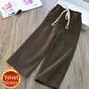 Pantaloni de catifea reiată cu picior larg pentru fete - Groși, eleganți și casual pentru toamnă/iarnă
