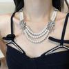 Colier Elegant cu Fundă de Perle Dublu Strat - Set Romantic de Bijuterii de Lux Ușor pentru Claviculă pentru Femei