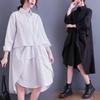 Cămașă neagră, rochie, temperament mic, înveliș pentru burtă lejeră, rochie căptușită cu mânecă lungă.