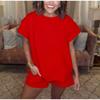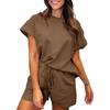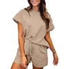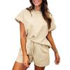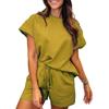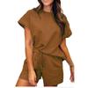 YYFS Moda dame ocazional vară primăvară culoare uni imprimeu mâneci scurte cu gâtul O pantaloni pantaloni costume