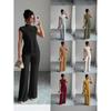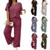 Costumul cu pantaloni lungi tricot în coastă în stil simplu, tricou cu mânecă scurtă și pantaloni largi, set de 2 piese, vară, toamnă, pentru femei