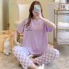 Set Pijama pentru FemeiMânecă Scurtă Pantaloni Lungi Pijama Studențească Desen Animat Mărimi Mari Carouri Pantaloni Haine de Casă Set Două PiesePijamale Wo