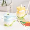 Summer Flower Ceramic Cup Cute Mug with Lid Couple Water Cup Women's Cup Design Sense Ins Style Coffee Cup
