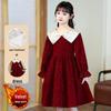 Această rochie elegantă de tip prințesă cu mânecă lungă este perfectă pentru sezoanele de toamnă și iarnă.. Fabricată dintr-un amestec moale de bumbac, oferă atât confort, cât și stil pentru a-l menține pe micuțul tău confortabil și la modă.. Rochia are un finisaj luxos de catifea, adăugând o notă de rafinament, ideală pentru ocazii speciale sau pentru ținute de zi cu zi.