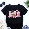 Summer Women's Beverage Printed Loose Round Neck Casual Pure Cotton Short Sleeved T-shirt Women's