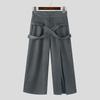 INCERUN Pantaloni lungi casual pentru bărbați, cu fermoar și nasturi în față, despărțiți în cruce