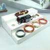 Suport de Expunere Bijuterii din Catifea pentru Inele & Brățări - Formă Trapezoidală cu Accente Aurii și Argintii