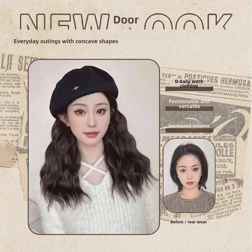 Perucă cu beretă versatilă pentru femei: Postă de păr elegantă, lungă și ondulată, cu pălărie detașabilă