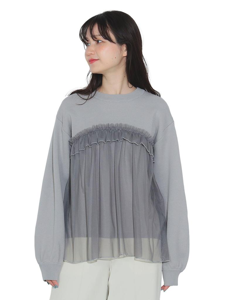 Un tricot cu design matur și drăguț, cu material tul atașat în stil bustieră. Cu o siluetă pufoasă, poți crea o impresie superbă doar purtând-o. Aceasta este o piesă atrăgătoare cu fir sclipitor pe partea de tul.