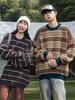 Japanese Style Men's Crew Neck Sweater Loose Casual Autumn Winter Striped Patchwork Knitting Shirt