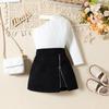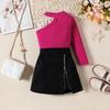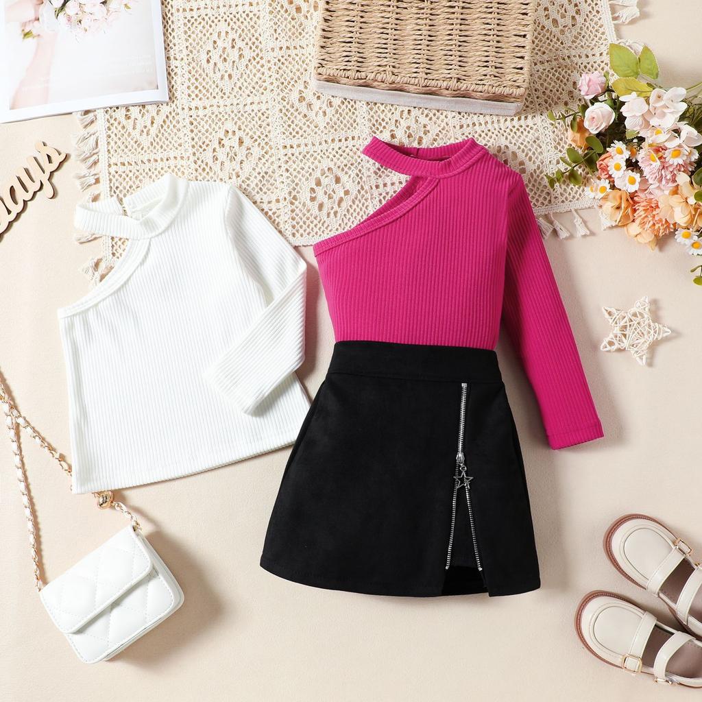 Costum de modă pentru fete Toamnă Copii Umăr în diagonală Mânecă lungă + Fermoar stea Fusta în linie A Costum din două piese