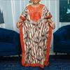 Caracteristici:Rochie lungă cu margini contrastante în culoarea florilor și poziționarea mânecilor