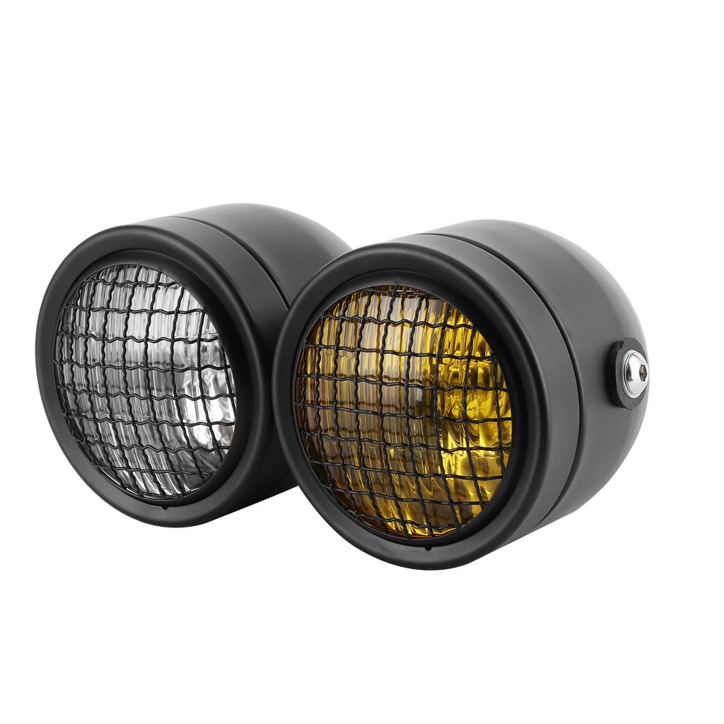 8.2in Retro Headlight Headlamp Round Dual Lamps Yellow White Light Universal for Motorcycle