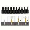 Acest kit extractor de șuruburi din 10 piese are dimensiuni care variază de la 1/8 inch (3,5 mm) până la 13/32 inch (10,3 mm), oferind versatilitate pentru diferite nevoi de extracție. Fiecare unealtă este prelucrată cu precizie, cu duritate specială pentru o utilizare de lungă durată. Marcajele clare de pe fiecare unealtă simplifică identificarea și selecția mărimii, oferind confort în manipularea șuruburilor și șuruburilor de orice dimensiune.