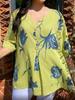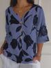 Nou imprimat bumbac și in cu guler în V, pulover cu mânecă scurtă, jachetă casual de primăvară și vară