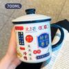 Ceașcă ceramică în stil Hong Kong, ceașcă de apă nostalgică vintage, suvenir cadou, cană de cafea cu capac, imitație de email, ceașcă, stil chinezesc