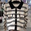 2023 Autumn/Winter Women's Striped Knitted Cardigan with Lotus Leaf Collar - Elegant Small Fragrance Style Wool Sweater
