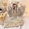 Pijamale de iarnă cu glugă lungă de flanel pentru femei - halat de baie cu mânecă lungă și calduroasă
