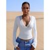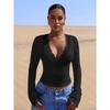 Tricou subțire cu mânecă lungă pentru femei, cu decolteu în V, dantelă și dantelă
