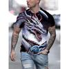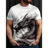 Tricou bărbătesc cu imprimeu de dragon în amestec de bumbac - Guler rotund elegant, confortabil și respirabil, pentru ținute casual de vară, de zi cu zi - Promoție