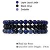 kirykle Natural Stone Bracelet Sets 3Pcs/set Obsidian Hematite Tiger Eye Beads Bracelets Men for Health Protection Soul Jewelry