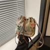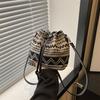 Geantă de pânză etnică de mare capacitate cu șnur de tragere, geantă de umăr cu un singur crossbody, geantă cu găleată de apă