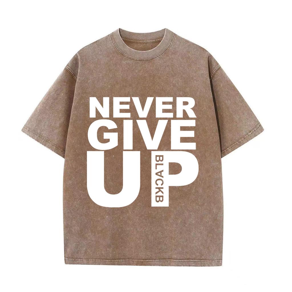Retro Washed Vintage Women T-shirt Never Give Up Fleece Harajuku Oversized Pullover Cute Couple Valentine's Day Gift T-shirt
