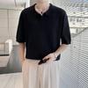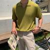 Polo cu dungi pentru bărbați din mătase de gheață - Top coreean la modă cu mânecă scurtă și guler pentru vara 2023