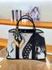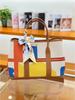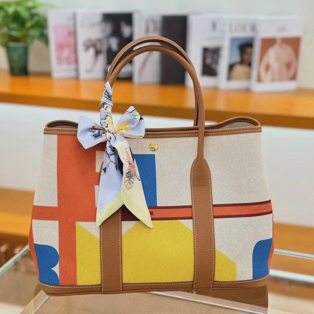 Women's Genuine Leather Garden Tote - 2025 Canvas & Cowhide, Large Capacity, Contrast Color Shoulder Bag