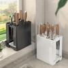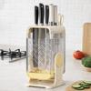 Suport multifuncțional pentru cuțite și ustensile de bucătărie în stil crem, cu cutie integrată pentru condimente