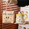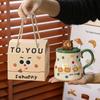 Cutie de transport cu buline, animale cu capac, lingură, ceașcă ceramică, set de uz casnic, suvenir, cană pentru cupluri, cană de apă de mare valoare
