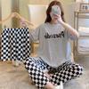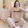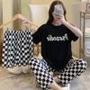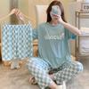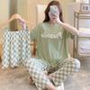 3PCS/Set Sexy Nightwear Women Letters Plaid Print Silk Pajamas Girl Sleepwear Round Neck Loungewear Ladies Casual Soft Home Wear