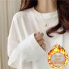 Tricou alb cald de damă din catifea dublă față-verso de lungime medie - Gât rotund, croială largă, interior periat pentru toamnă/iarnă