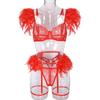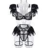 Set de lenjerie intimă sexy din dantelă cu pene și detaliu cu lanț metalic