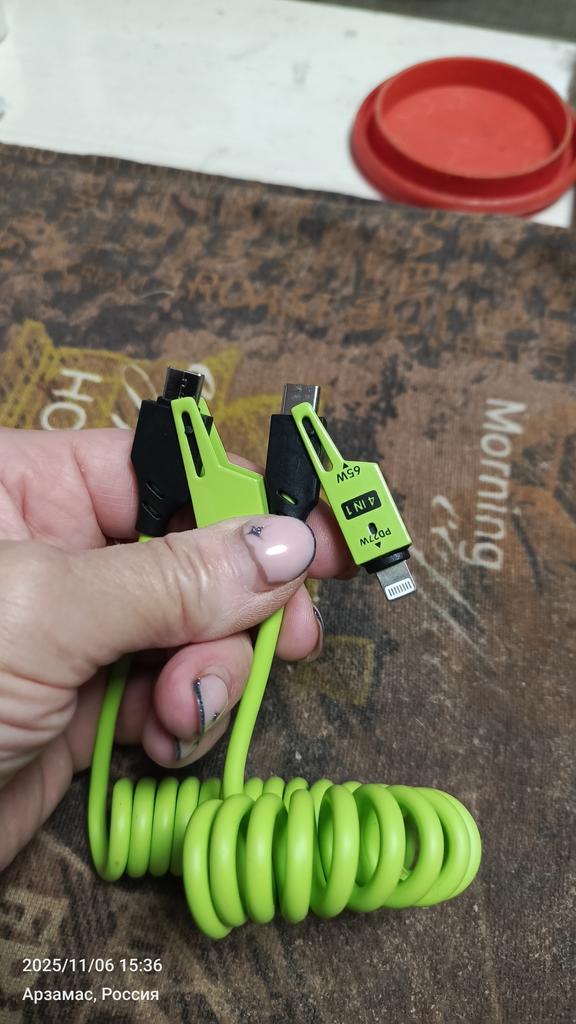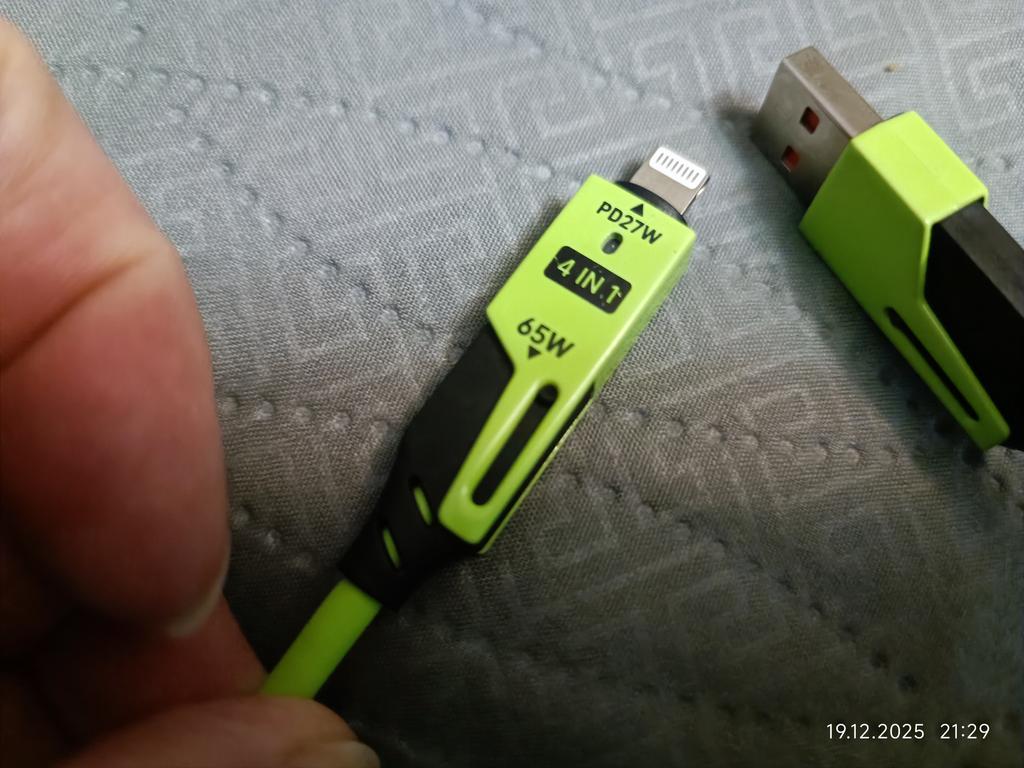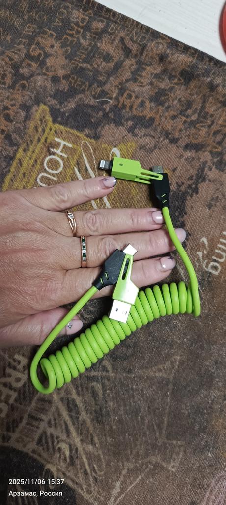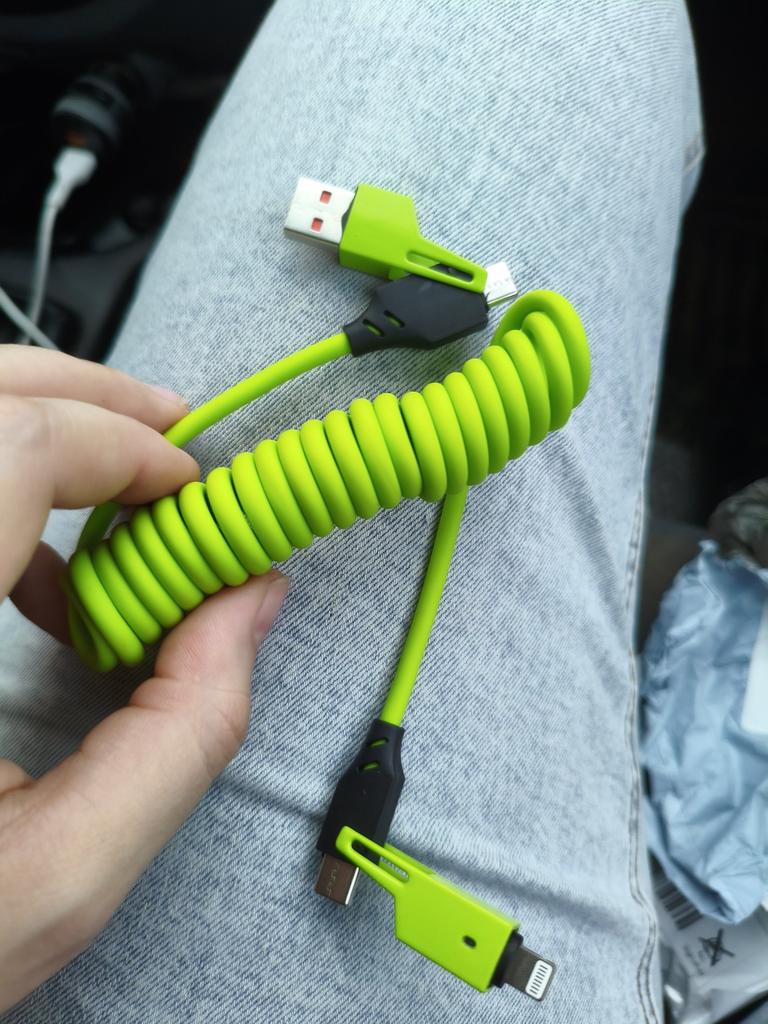 Cablu excelent. Achiziționat pentru geanta de călătorie. Convenabil de utilizat în mașină, în autobuz și în tren. Dacă un prieten are un telefon cu un conector diferit, acum îl pot ajuta.