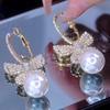 Fashion rhinestone leaf pearl dangle Earrings Street Style Korean Fashion Jewelry Gift