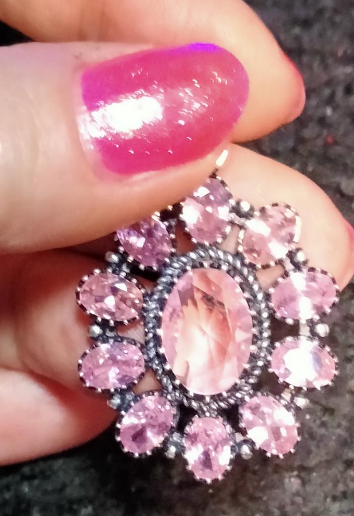 Pandantivul cu flori roz 🌸 este super prelucrat și de mare calitate.👌 Aici a fost fiecare pietricică așezată cu grijă. 💖 O mie de mulțumiri 💐