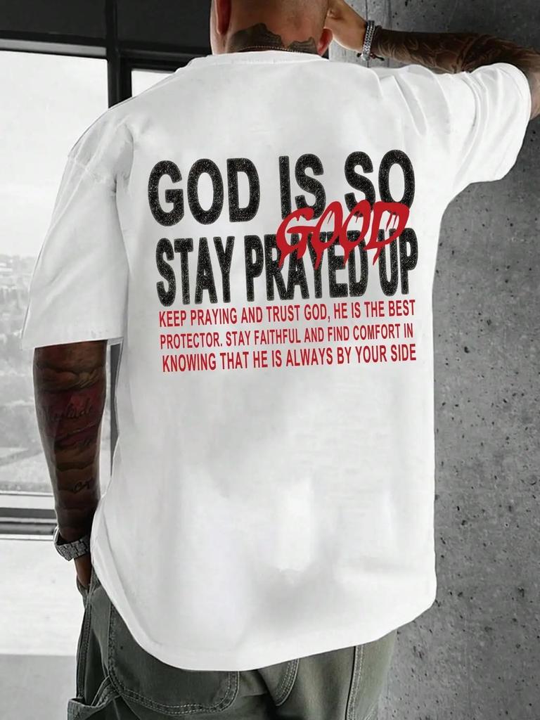 God Is So Stay Prayed Up Letter Graphic Print Men Tshirt Summer Loose Cotton T Shirt Breathable Clothes Oversize Casual Tees