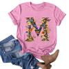 Top tricou cu mânecă scurtă pulover cu gât rotund cu imprimeu ocazional la modă pentru femei