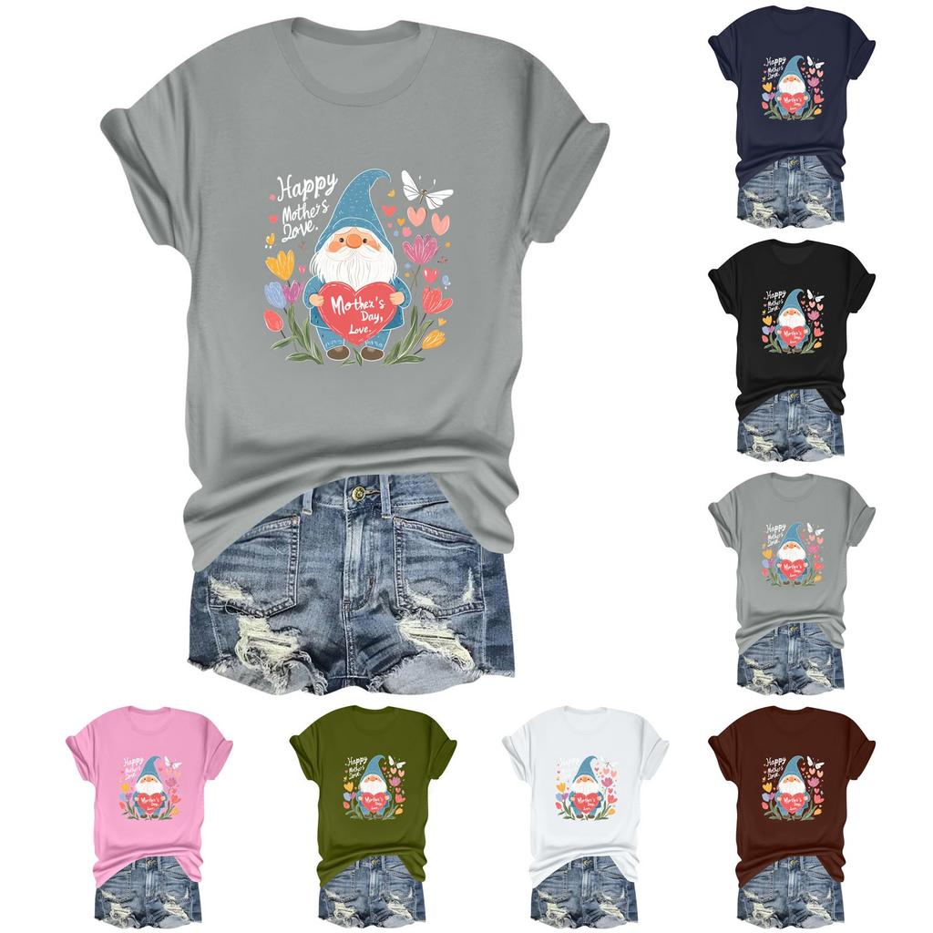 HAPPY MOTHER'S DAY LOVE Women's Casual Mother's Day Print Loose T-shirt Round Neck Pullover Short Sleeve Top