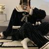 Girls' Black College Style Flannel Pajamas - Cute, Thick Coral Fleece, Large Size for Autumn and Winter.