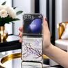 Husă pentru telefon Samsung Galaxy Z Flip 3 4 5 cu design de flori violete Z3 Z4 Z5 Husă cu rabat Husă de protecție ușoară și elegantă
