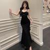Women's pure desire sexy diamond-encrusted pleated slim-fitting fishtail dress