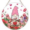 Semn rustic din lemn cu pitic de Ziua Îndrăgostiților, cu design floral și dragoste, cu trandafir roz și roșu, inimă, pitic, 14 februarie, semn rotund pentru ușă de Ziua Îndrăgostiților