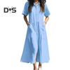 Designul cu mânecă scurtă cu rever și două buzunare adaugă caracter practic siluetei sale elegante în linie A. Perfectă pentru diverse ocazii, de la ținute de birou până la ieșiri la plajă, această rochie se asortează frumos cu accesorii precum coliere, brățări și sandale.. Ridică-ți aspectul fără efort cu această rochie cămașă lungă, lejeră, care emană atât eleganță, cât și ușurință.