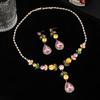 Set bijuterii cu perle și diamante cu culoare exagerată, colier luxos cu strasuri pentru cină, temperament, cercei picătură de apă